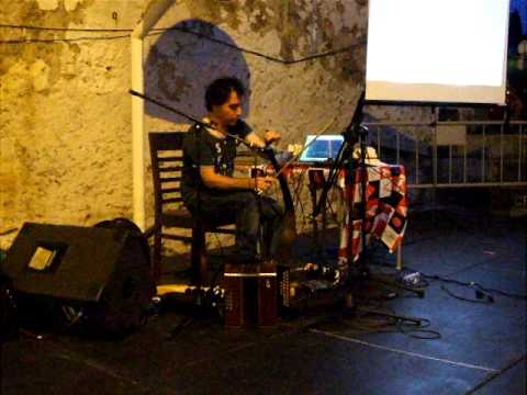 Su estilo musical que abarca desde la rumba, el ska, el punk, el folk hasta las rancheras. En sus conciertos interpreta canciones con el serrucho, con acordeón, con la gaita midi, el zendrum, trompeta, bateria, percusión, bajo, samplers y además canta.